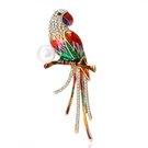 Broszka ozdobna - papuga z cyrkoniami i perłą BZ221