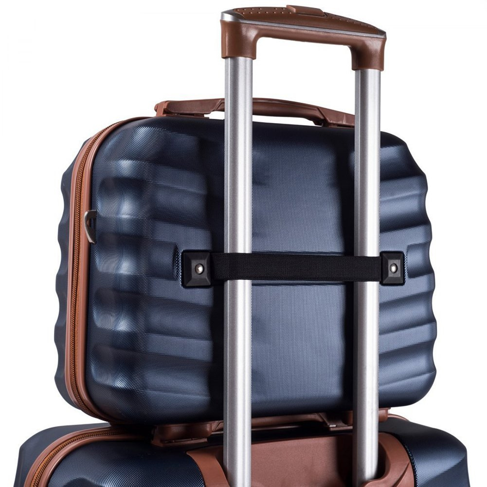 - na tylnej powierzchni znajduje się gumowa taśma do zamocowania kuferka na wysuwanej rączce walizki