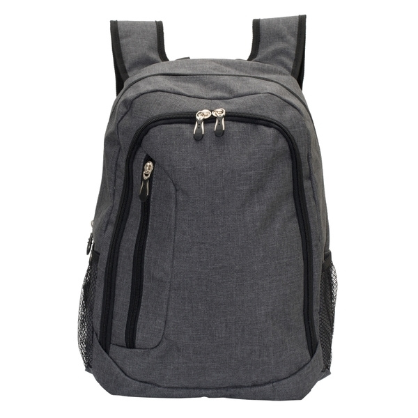 Dwukomorowy plecak miejski. Wykonany z wytrzymałej tkaniny o splocie oxford, 100% poliester powlekanej PVC. Wyposażony w tradycyjne zamki. Dodatkowo posiada 1 kieszeń z przodu oraz 2 boczne, wykonane z siateczki. Na szelkach naszyte są paski z odblaskowego materiału.