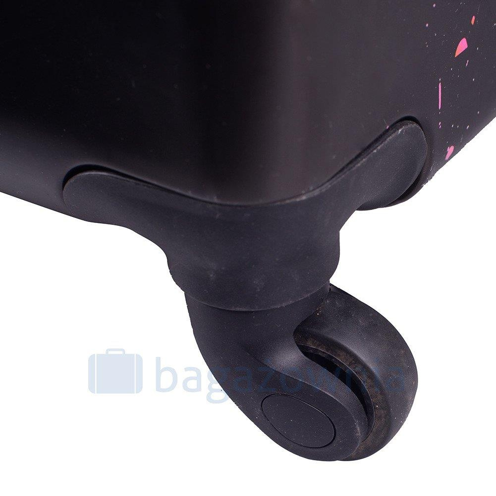 - 4 koła (spinner 360) (koła wykonane z gumy i PVC co dodatkowo wzmacnia je przed uderzeniami zewnętrznymi, oś na której zamocowane zostało koło wzmocniona pyłem diamentowym)