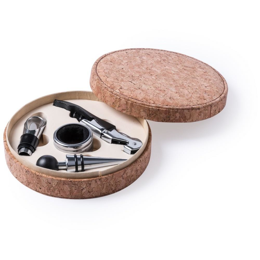 Zestaw do wina 4 el. w pudełku z naturalnego korka, akcesoria do wina: