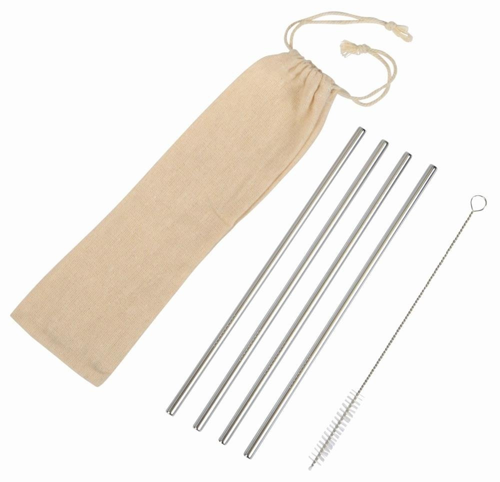 Zestaw słomek ze stali nierdzewnej DRINK FRIENDLY składający się z 4 słomek i szczotki ułatwiającej czyszczenie, wewnątrz torby bawełnianej przyjaznej dla środowiska.