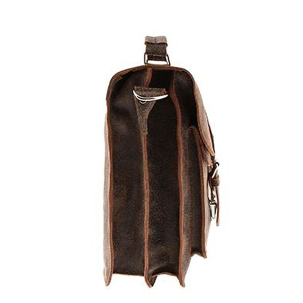 Dwukomorowa torba UNISEX z odpinanym pasem na ramię, wykonana w stylu Old School ze specjalnie postarzanej naturalnej skóry. Polecana dla aktywnych obojga płci. Dodatkową cechą jest jej funkcjonalność oraz oryginalny wygląd. Torbę można nosić w ręku jak i na ramieniu. Torba posiada wiele kieszeni i schowków, które pomieszczą laptop o wym. 27 x 36 cm, segregator lub skoroszyt A4 oraz inne drobiazgi takie jak portfel, smartfon itp.