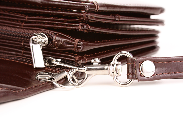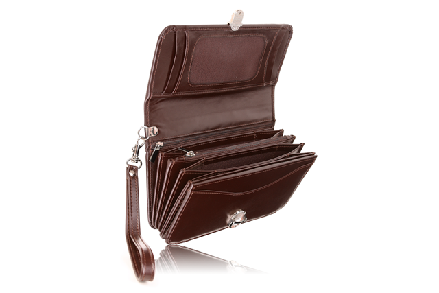 Bardzo pojemny skórzany portfel dla Pań, z odpinanym paskiem do ręki, dostępny w trzech atrakcyjnych wariantach kolorystycznych. Z pewnością pomieści wszystkie najpotrzebniejsze dokumenty, karty i wizytówki. Duża ilość przegródek i kieszeni sprawi, że utrzymanie porządku we wnętrzu nie będzie problemem, nawet jeżeli będzie wypełniony po brzegi. Solidne wykonanie, przyciągający uwagę fason i wysokiej jakości włoska skóra użyta w produkcji, sprawią że VOOC Prestige PPD1 usatysfakcjonuje każdą z Pań.