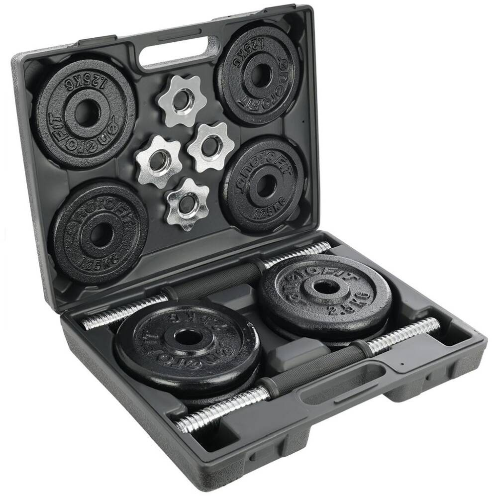 ZESTAW HANTLI WALIZKA 19 kg, to 14 częściowy zestaw do ćwiczeń siłowych, ogólnorozwojowych i rehabilitacyjnych. Trening z ciężarkami pomoże Ci ukształtować mięśnie przedramion, ramion, barków oraz klatki piersiowej. Ruch można wykonywać stojąc, siedząc bądź leżąc na ławce treningowej. Hantle stosowane są przy treningach siłowych, jak i kombinacjach ćwiczeń wydolnościowych. Ćwiczenia hantlami są jednymi z najbardziej uniwersalnych form aktywności fizycznej.