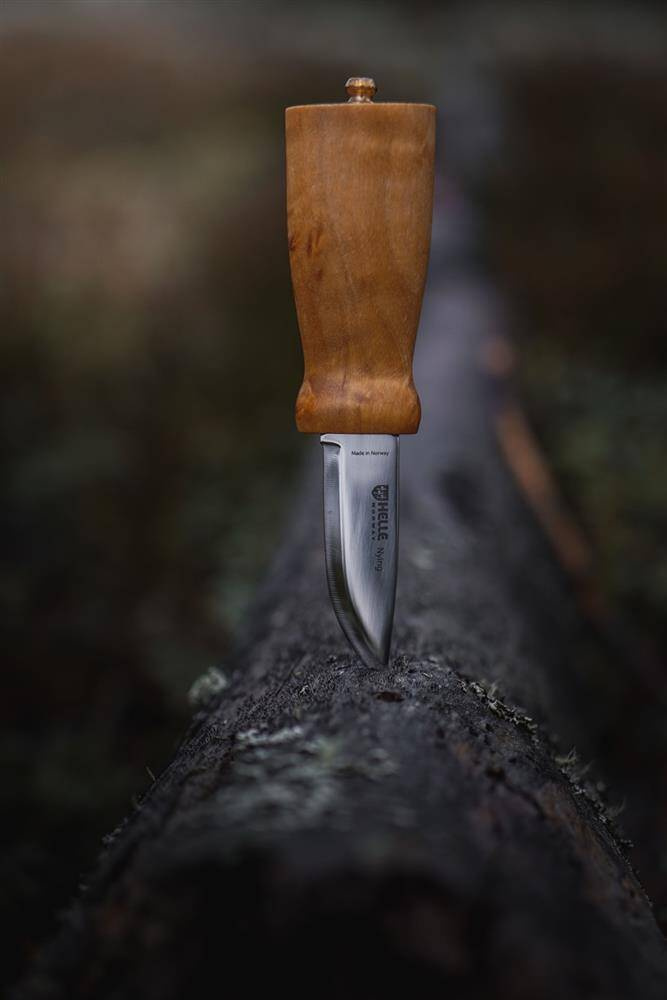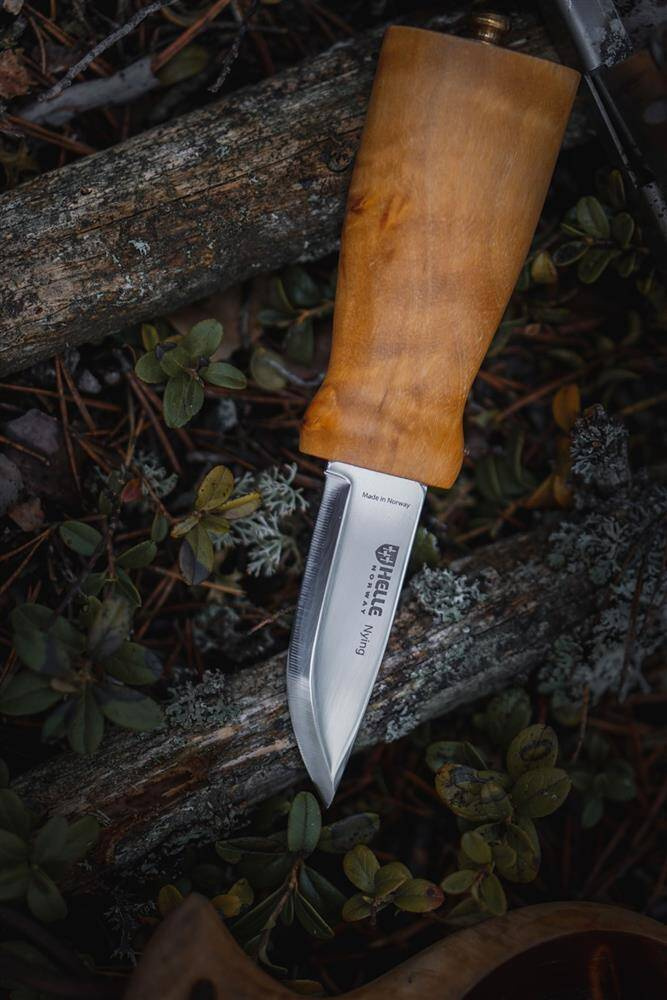 - Klinga z 3-warstwowej nierdzewnej stali, rękojeść z mazerowanej brzozy.