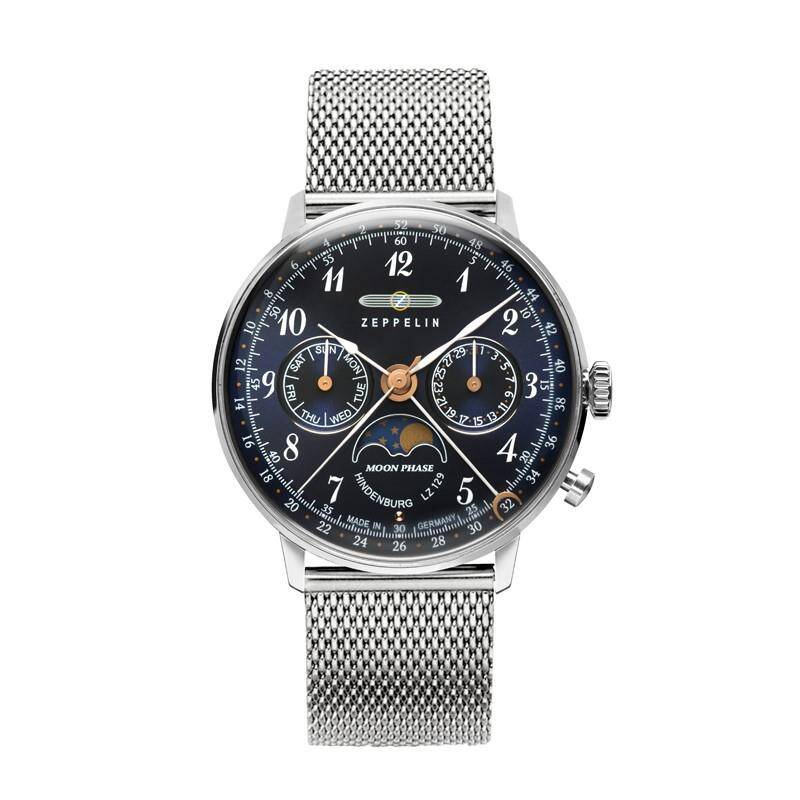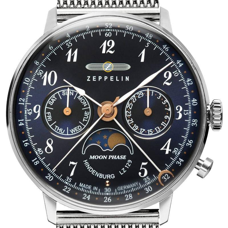 Nowa kolekcja Hindenburga emanuje ponadczasowym urokiem w stylu retro dzięki precyzyjnie opracowanym tarczom. Ciekawie złożone elementy, takie jak wyświetlacz fazy księżyca i wysoka jakość wykonania podkreślają bezkompromisowe standardy jakości tych zegarków.