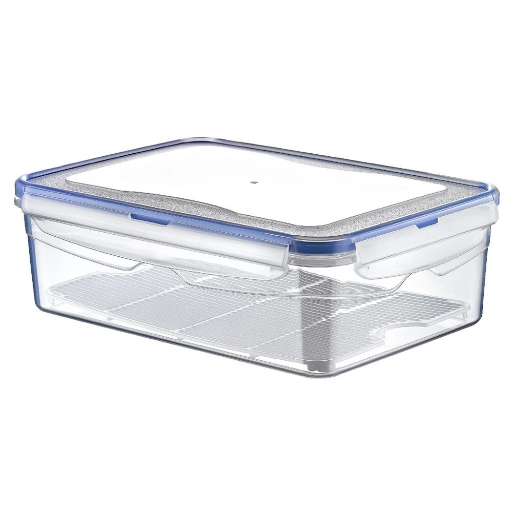 Pojemnika SAVER o pojemności 2,6L do przechowywania żywności. Jest niezbędnym elementem wyposażenia każdej kuchni. Uniwersalny kształt i rozmiar pomaga z łatwością zachować porządek w szafkach, lodówce lub zamrażarce. Dzięki przezroczystym ściankom, widoczna jest zawartość pojemnika. Szczelne zamknięcie przedłuża świeżość potraw oraz gwarantuje wysoki poziom higieny. Lekki i wygodny, z pewnością przypadnie do gustu osobom, które chcą mieć przy sobie ulubione przekąsek lub smakołyki. Idealnie nadaje się do biura, szkoły, na biwak czy wycieczkę. Odporny na wysokie i niskie temperatury. Nadaje się do używania w kuchence mikrofalowej, zmywania w zmywarce, przechowywania w zamrażarce.
