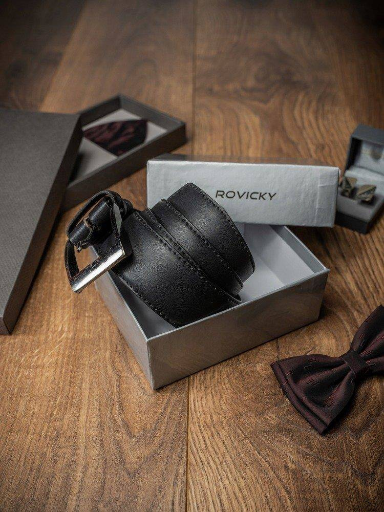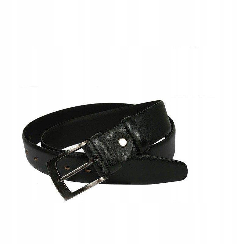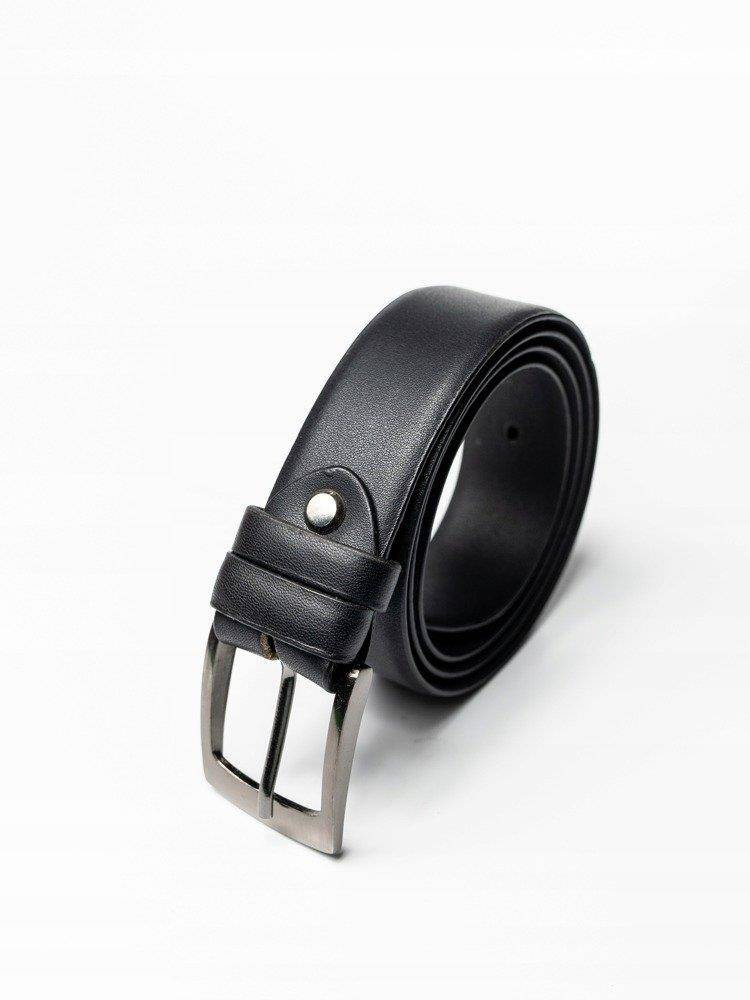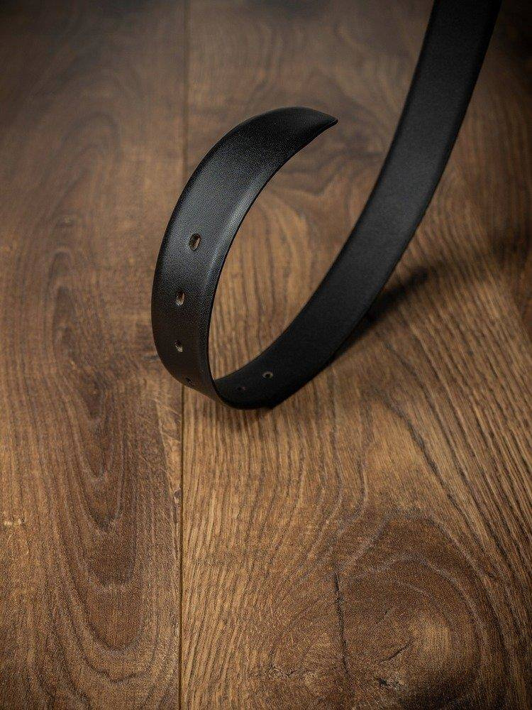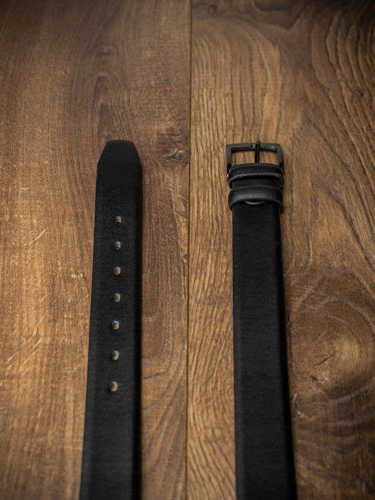 Pasek BOM-01-TX wykonany z wysokiej jakości skóry naturalnej w kolorze czarnym, z klasyczną prostą metalową klamrą.