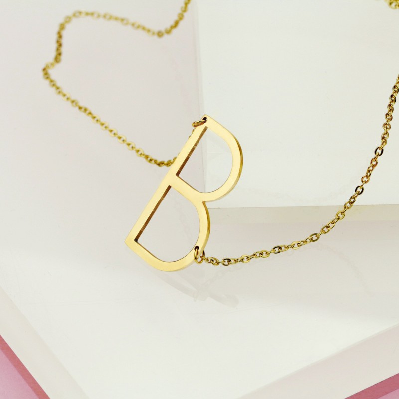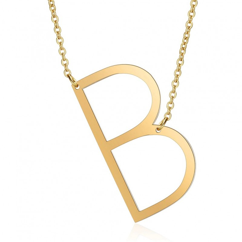 Naszyjnik stal chirurgiczna literka B platerowana złotem NST995B