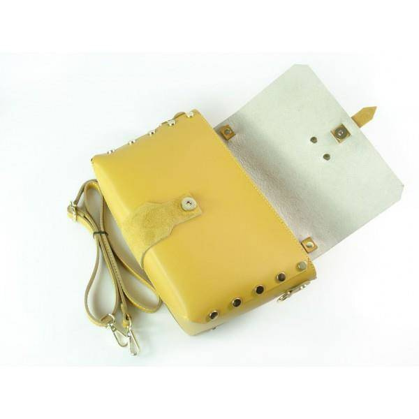Oryginalna włoska torebka listonoszka -kufereczek wykonana ze skórki naturalnej + zamsz,
