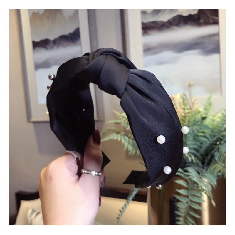Opaska turban z materiału gruba czerń perełki O227CZ