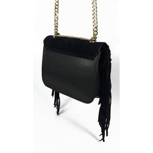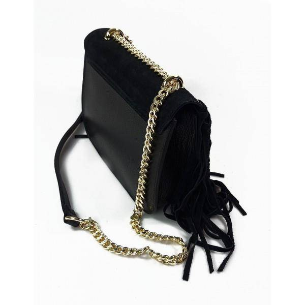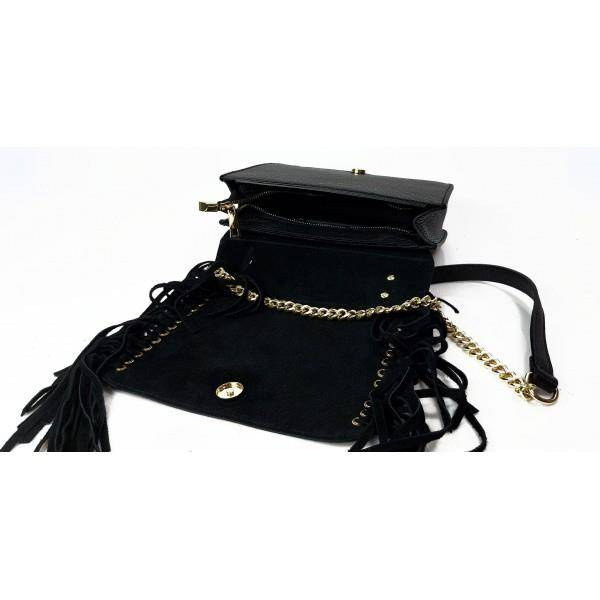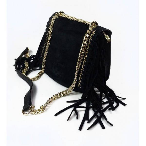 Piękna duża listonoszka A5 frędzle ,złoto ,dzety ,łańcuch skóra zamsz z dollaro czarna VPZ88N