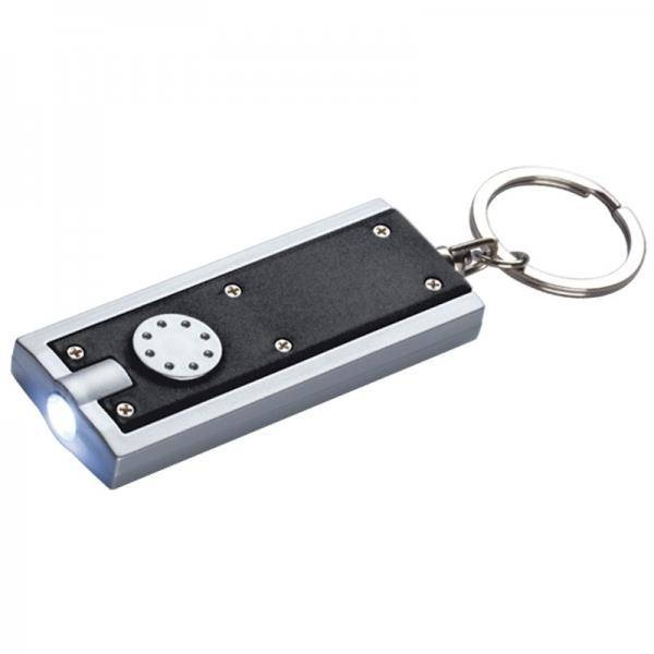 Plastikowy brelok do kluczy o bardzo nowoczesnym designie z lampką LED.