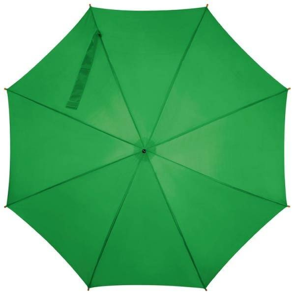 Ten prosty, stylowy parasol z drewnianą rączką i trzonem oraz wysokiej jakości metalowym stelażem.
