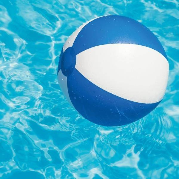 Dwukolorowa piłka plażowa wykonana z wytrzymałego tworzywa, dostosowana do norm unijnych.
