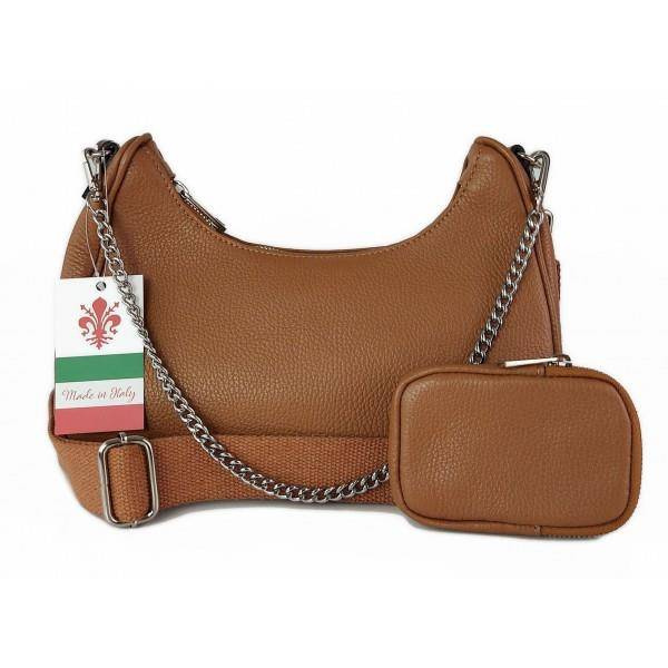 Włoska listonoszka, przewieszka ,Vera Pelle srebrne okucia ,szeroki pasek, Camel VP742C