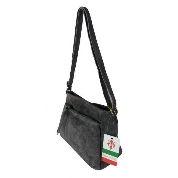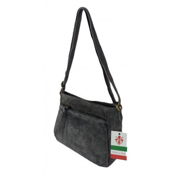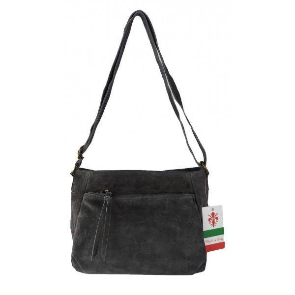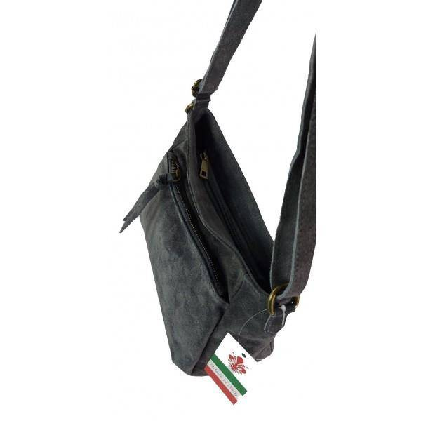 Oryginalna włoska torebka listonoszka wykonana ze skórki naturalnej zamszowej