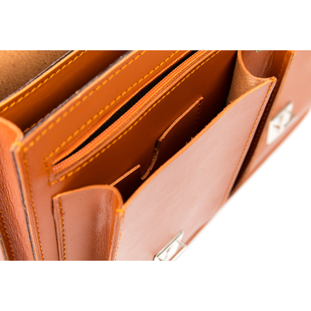 Modna torba skórzana w stylu Vintage doskonała jako dodatek do codziennej stylizacji. Torba wykonana z naturalnej, garbowanej roślinnie skóry juchtowej. Wewnątrz posiada dwie przegrody, w tym jedną większą mieszczącą np. laptop. Duża ilość kieszeni oraz mini organizer na długopisy i wizytówki zapewnia funkcjonalność w codziennym użytkowaniu.