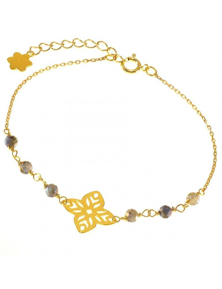Bransoletka wykonana ze srebra próby 925 , pozłacanego 24 karatowym, żółtym złotem Kamień:  Labradoryt Rozmiar kamienia: 3 MM Długość :17,5 cm + przedłużka do 19,5 cm Możliwość zmiany kamienia WIĘCEJ INFORMACJI   Produkt wykonywany ręcznie