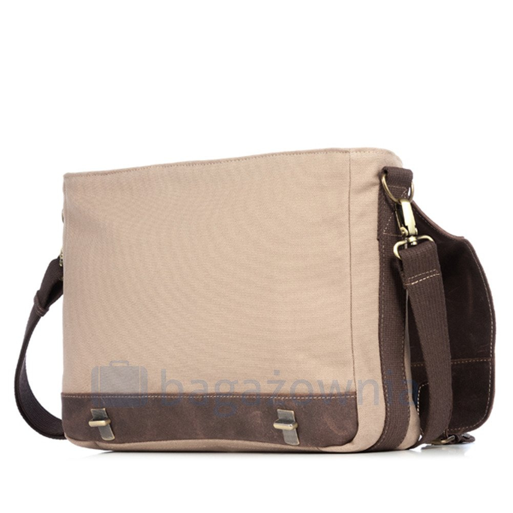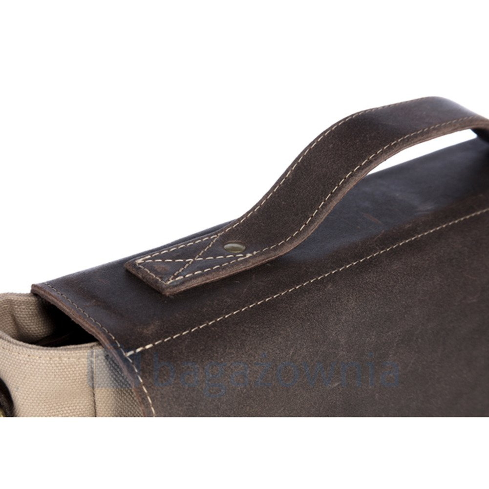 Przestronna torba na ramię wykonana z solidnej grubej tkaniny bawełnianej typu “CANVAS” połączonej z naturalną skórą typu OLD LOOK. Jeśli szukasz torby do zadań specjalnych, aby twój sprzęt był zawsze po ręką i jednocześnie posiadał odpowiednią ochronę, jest to model dla Ciebie. Niezobowiązujący styl i luz. Świetna zarówno do szkoły czy na uczelnie, jak też jako codzienna torba do pracy. Wewnątrz posiada specjalną komorę na laptopa wypełnioną miękkim materiałem w celu ochrony. Przestronna komora z mniejszymi kieszeniami na portfel, telefon i inne drobiazgi.