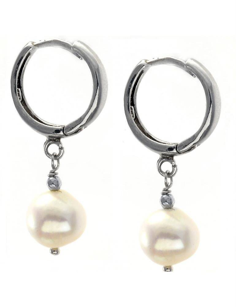Kolczyki srebrne, próba 925, platynowane Kamień: Perła  + Hematyt (BAZA) Możliwość zmiany kamienia WIĘCEJ INFORMACJI   Produkt wykonywany ręcznie