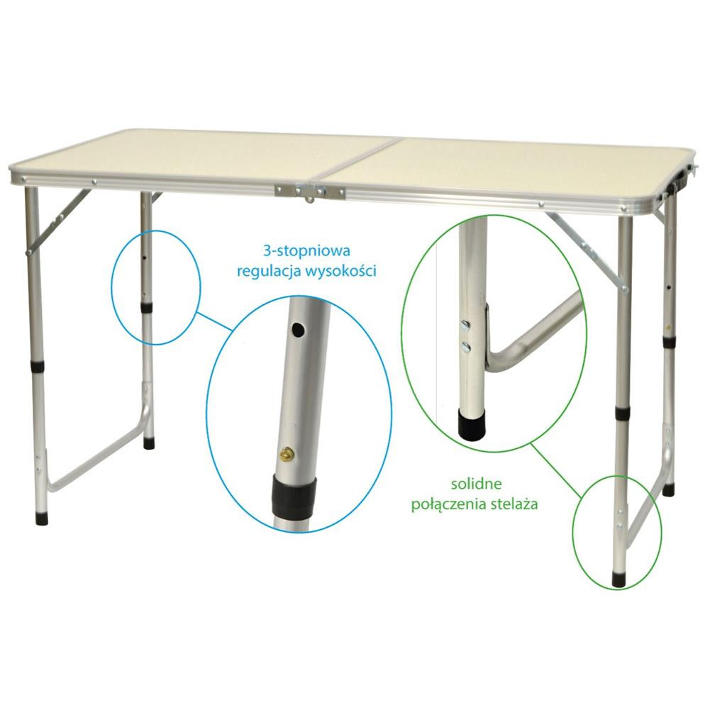 Turystyczny stół to podstawa każdego udanego kempingu, wakacji, wyjazdu na ryby i na działkę. Dzięki składanym nóżkom, stół zajmuje minimalną ilość miejsca i jest gotowy zawsze, kiedy go potrzebujesz. Wyróżnia go szybkie i łatwe rozkładanie.