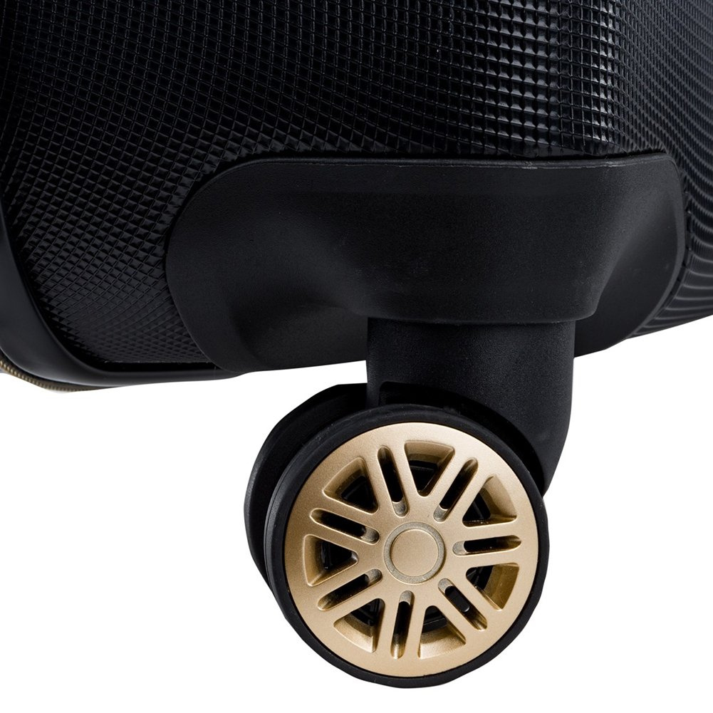 - 4 podwójne koła (spinner 360) (koła wykonane z gumy i PVC co dodatkowo wzmacnia je przed uderzeniami zewnętrznymi, oś na której zamocowane zostało koło wzmocniona pyłem diamentowym)