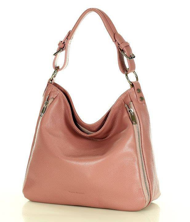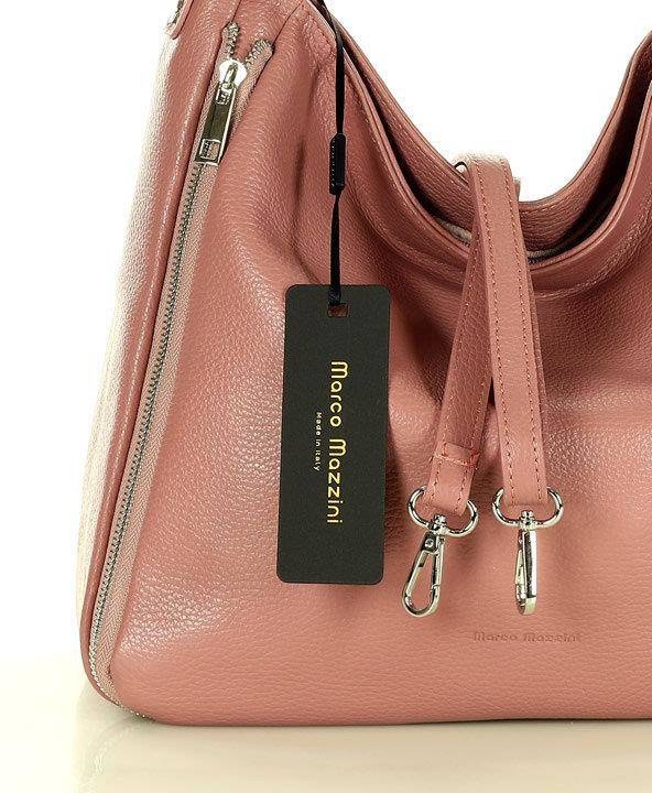 Każda z nas wie, że torebka to nie tylko ozdoba, ale też nieodłączny i praktyczny element Naszej stylizacji. Jeśli jesteś aktywną osobą i potrzebujesz torebki, na której możesz polegać w codziennej bieganinie – dobrze trafiłaś. Ten model zmieści format A4, posiada świetną organizację wnętrza oraz regulowaną rączkę, która zapewni Ci komfort w noszeniu na ramieniu. Torebka wykonana jest z wysokogatunkowej skory naturalnej. Z przodu modelu znajdują się pionowe, ozdobne zamki. W środku przegroda na zamek, dzieląca torebkę na dwie części oraz jedna kieszonka na zamek i dwie otwarte przegródki. Kolejna kieszonka na zamek znajduje się z tyłu torebki. Każdy drobiazg znajdzie tu swoje miejsce. W zestawie regulowany, długi pasek. Skórzana torebka miejska z kolekcji MARCO MAZZINI