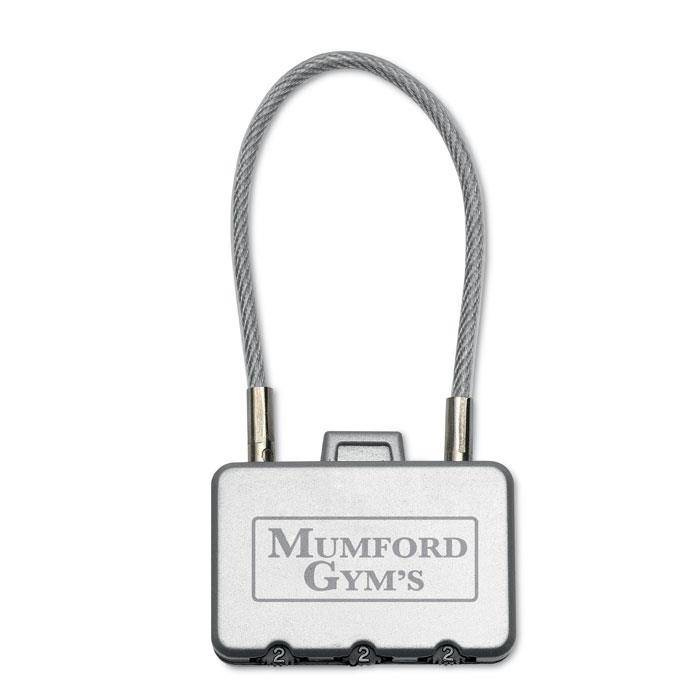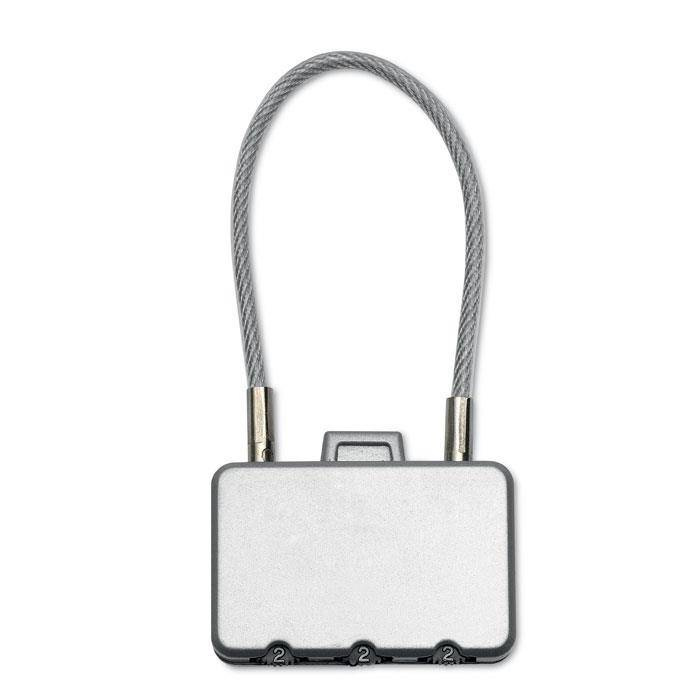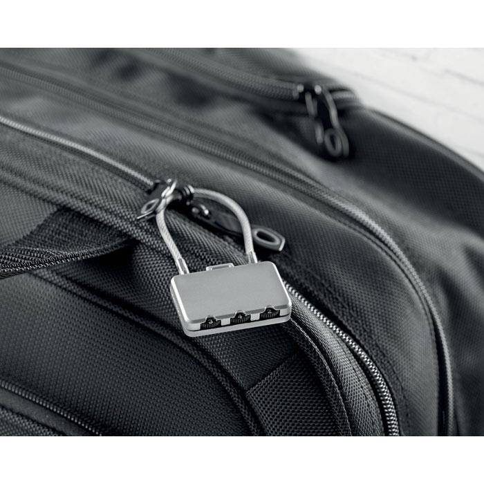 Zabezpieczenie bagażu w postaci kłódki metalowej z 3 kombinacjami kodu zabezpieczającego.