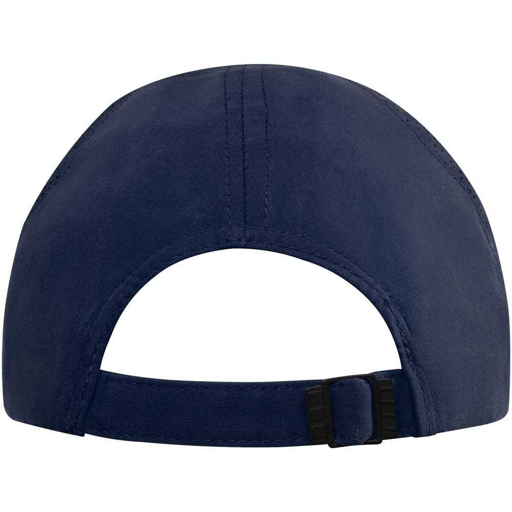 Przyjazna dla środowiska odzież służąca do celów promocyjnych. Daszek wygięty typu sandwich. Laserowo wycinane otwory wentylacyjne. Zapięcie na metalową sprzączkę.