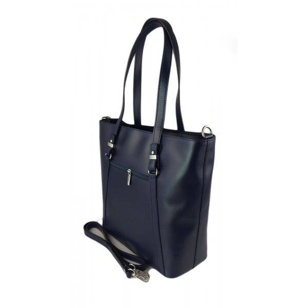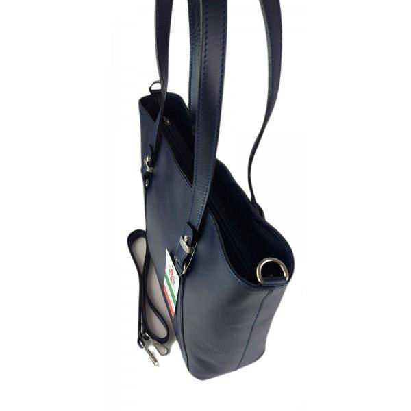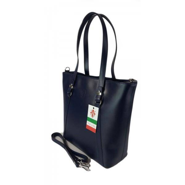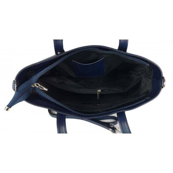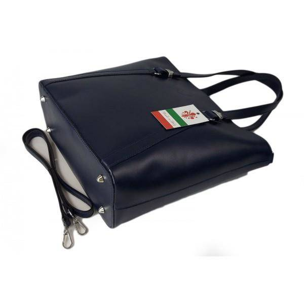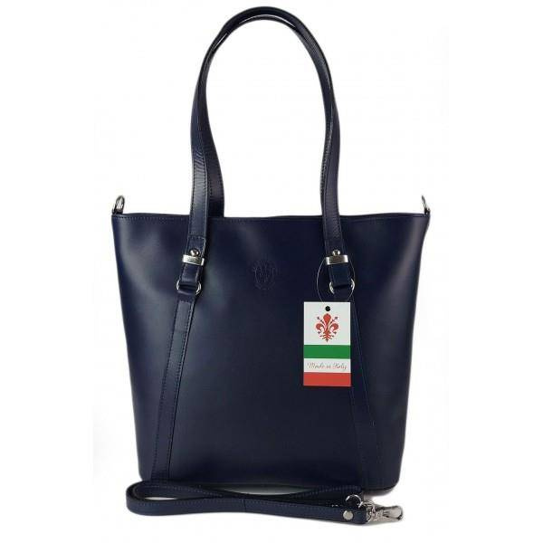 Klasyczna Włoska torebka skórzana na ramię mieści A4 ,Vera Pelle , Granatowa MVN14BS