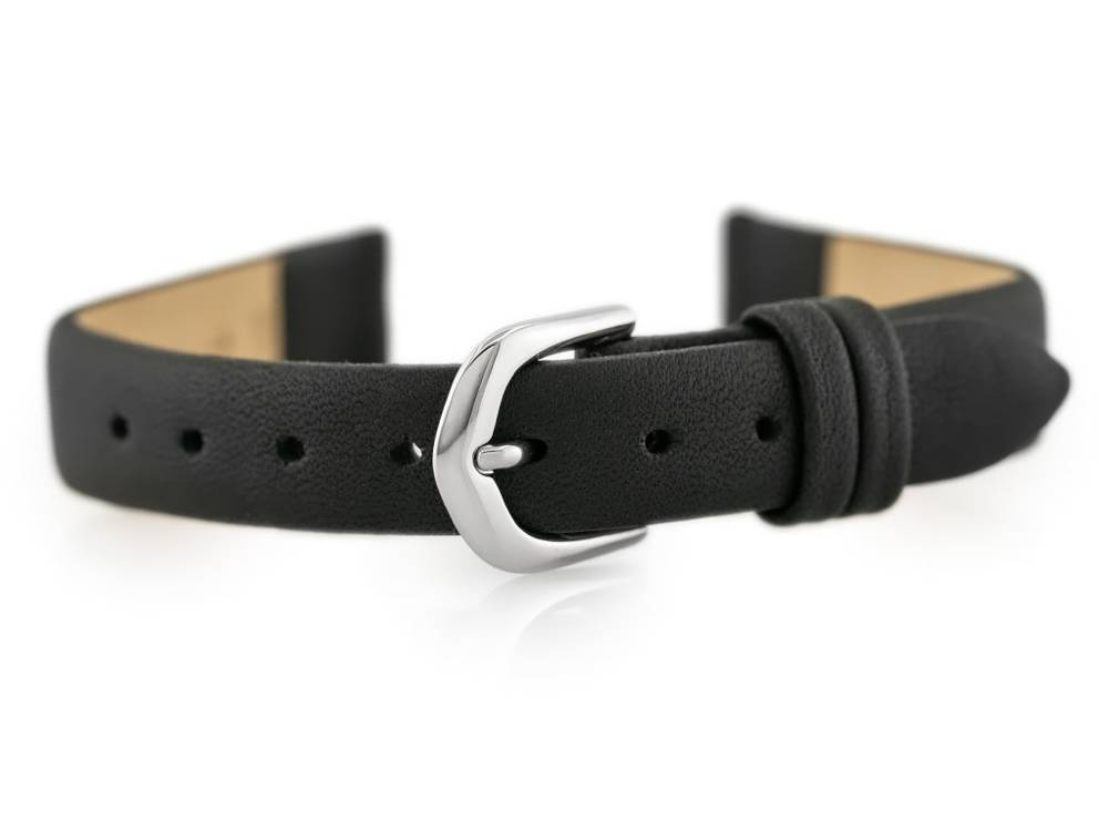 Pasek ze skóry naturalnej w kolorze czarnymi. Klamerka ze stali szlachetnej w kolorze srebrnym.
