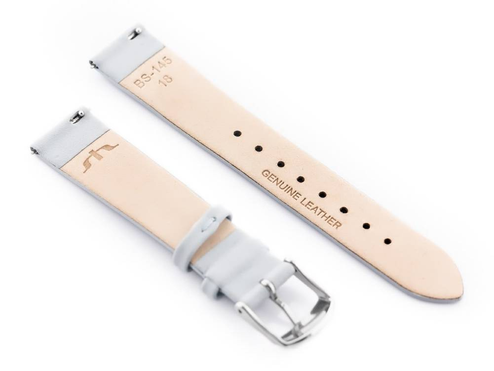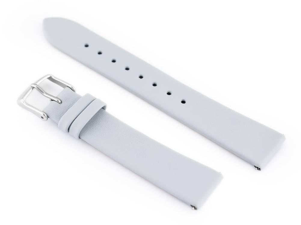 Pasek ze skóry naturalnej w kolorze jasnoniebieskim. Klamerka ze stali szlachetnej w kolorze srebrnym.