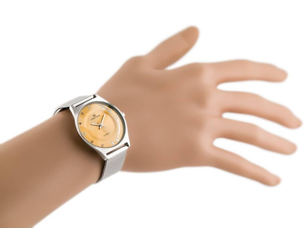 Kolorystyka: tarcza w kolorze ciemnozłotym, bransoleta w kolorze srebrnym, koperta w kolorze srebrnym