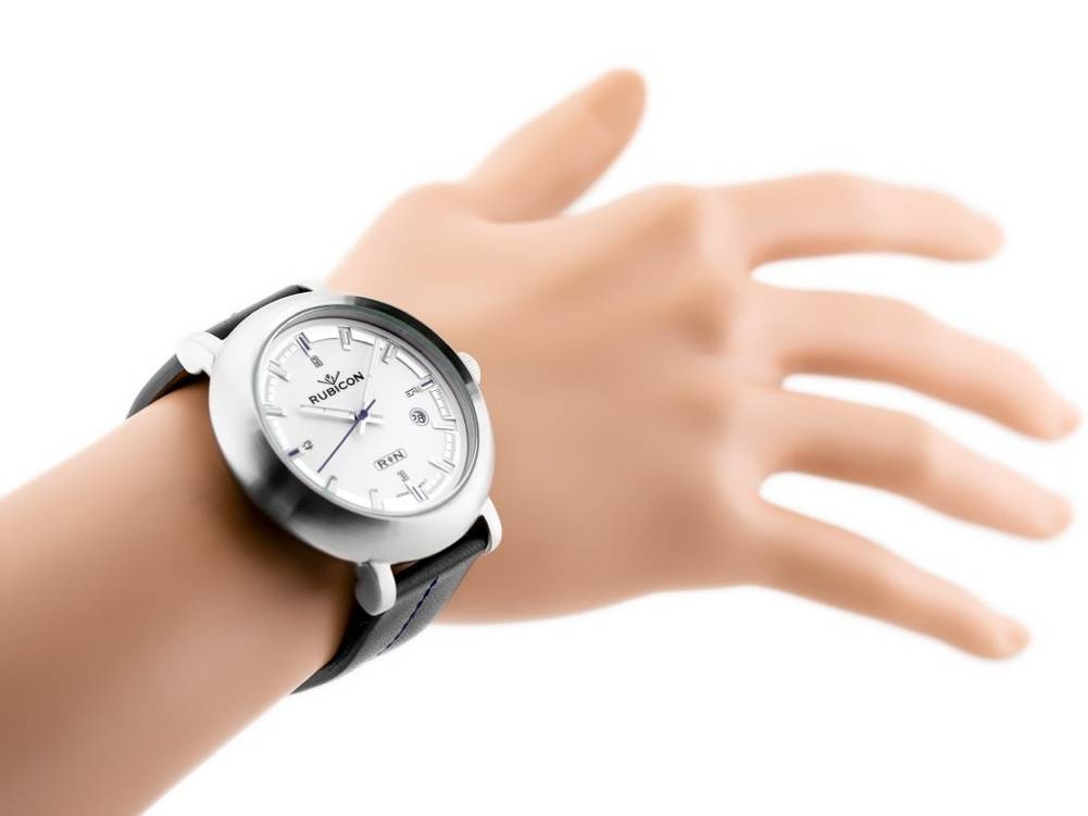 Kolorystyka: Tarcza w kolorze srebrnym, koperta w kolorze srebrnym, pasek w kolorze czarnym, granatowe przeszycia i sekundnik