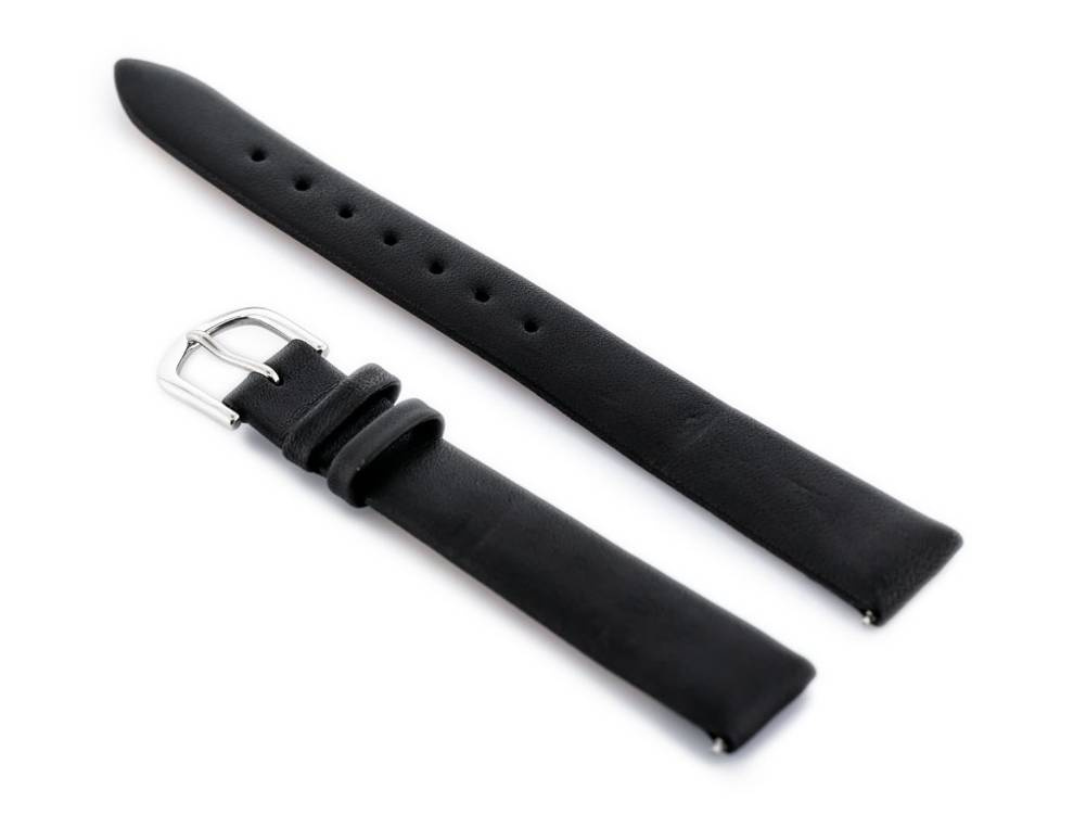 Pasek ze skóry naturalnej w kolorze czarnym. Klamerka ze stali szlachetnej w kolorze srebrnym.