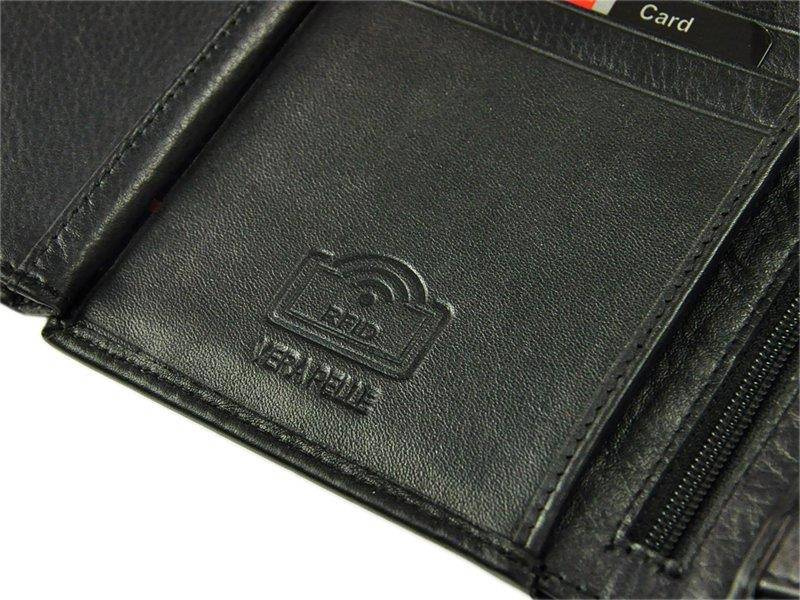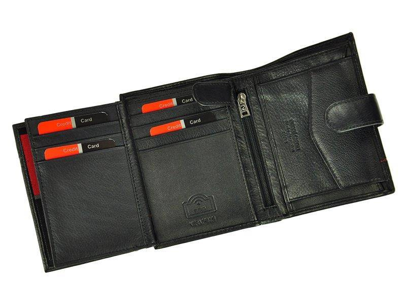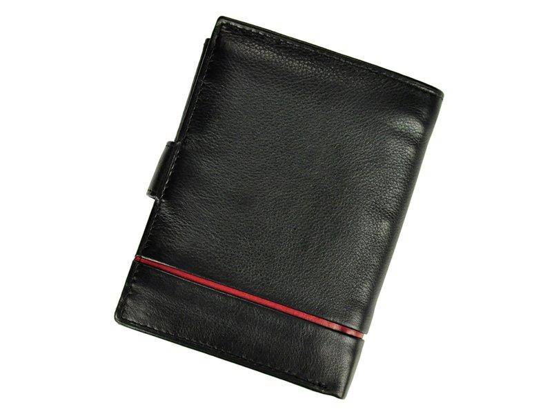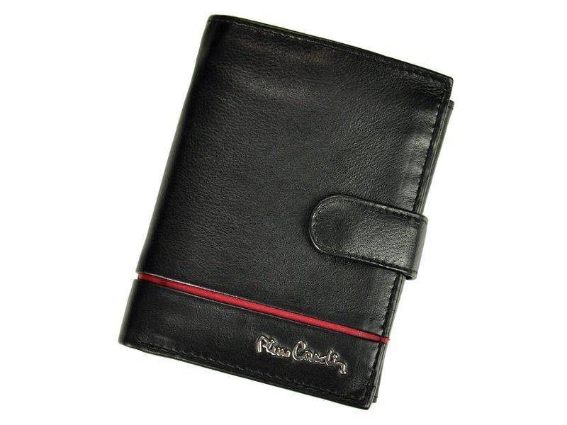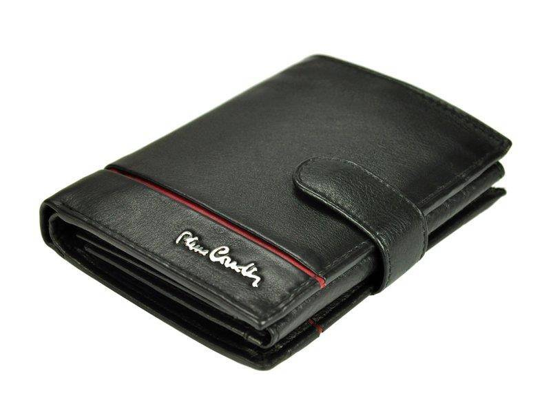 Skórzany portfel męski z kolorowym przeszyciem, zapinany na zatrzask - Pierre Cardin