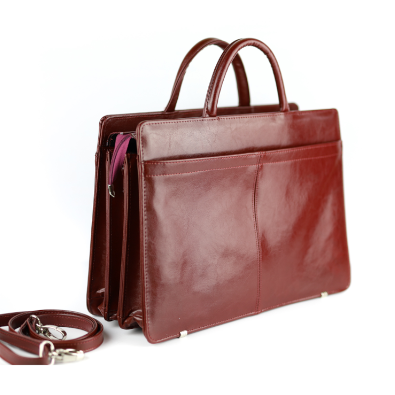 Po bokach teczka ma doczepione skórzane uchwyty, do których możesz przyczepić pasek, będący w zestawie.