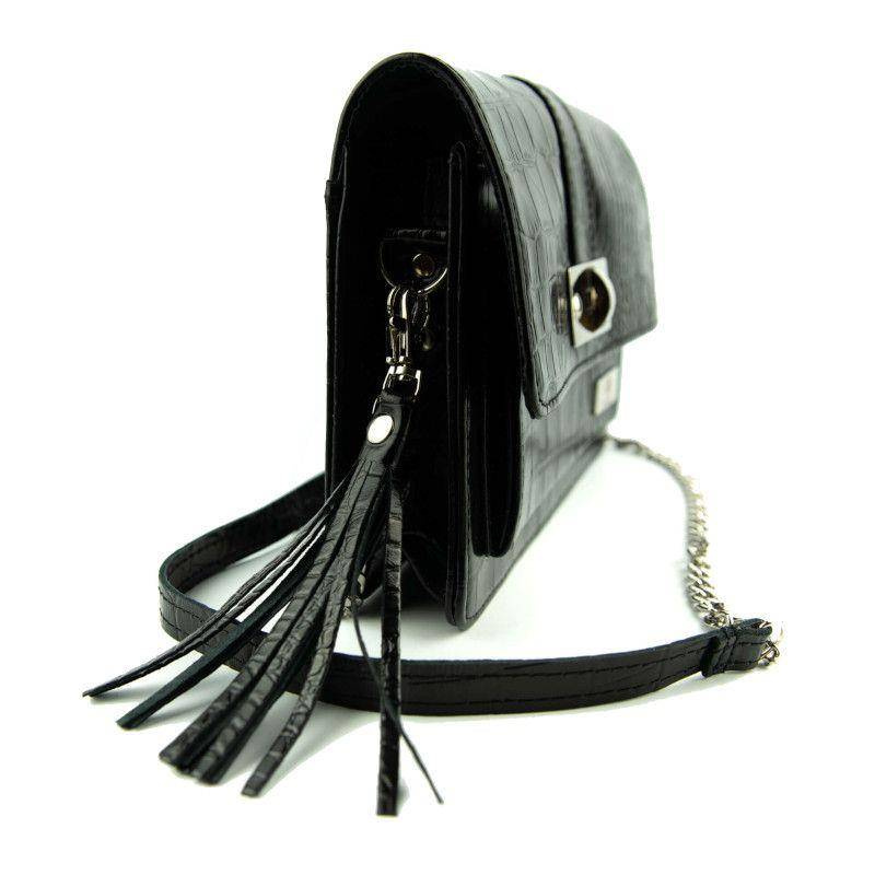 Wymiary (cm): 24 x 15 x 7 cm Długość paska: 110 cm Mamy dla Ciebie odświeżoną wersję codziennej, grzecznej torebki. Torebka z klapką to czysta praktyczność i wyjątkowość w jednym. Klapka zamykana na ozdobny tik-tak. Z tyłu kieszonka zapinana na okrągły magnes. W środku torebka ma jedną komorę. Oczywiście dodaliśmy 2 praktyczne kieszonki. Jedna skórzana, druga uszyta przez cała wewnętrzną długość torebki zasuwana na zamek. Na przedniej ściance torebki, pod klapką doszyliśmy prostokątną kieszonkę, po to by twoje klucze w końcu miały swoje miejsce ;) Wyjątkowość tej torebki polega również na tym, że zamiast zwykłego nudnego paska dołączyliśmy kultowy łańcuszkowy pasek! Dla wykończenia z boku torebki dopięliśmy frędzelek. Szyjemy tylko z naturalnych skór bydlęcych. To od Ciebie zależy którą z nich wybierzesz ;)Produkty wykonywane na zamówienie, dlatego czas wysyłki wynosi około tygodnia
