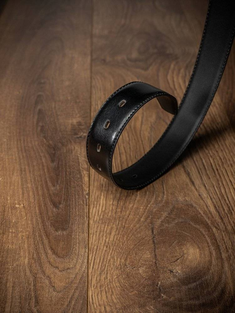Nowoczesny, oryginalny pasek wykonany z wysokiej jakości skóry naturalnej w kolorze czarnym, z klasyczną prostą metalową klamrą. Ciekawy styl urozmaici każdą stylizację.