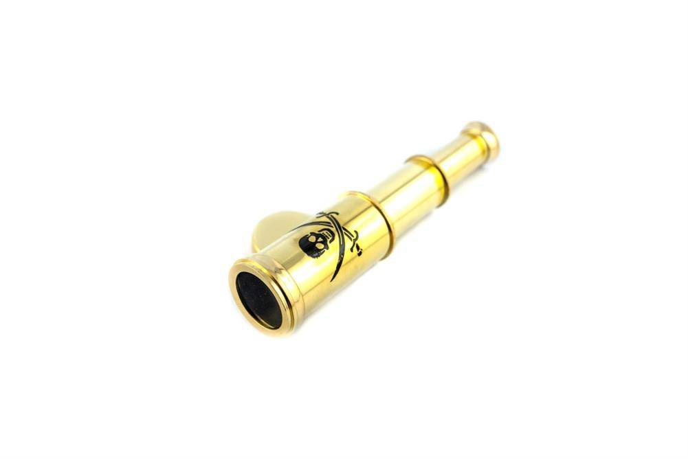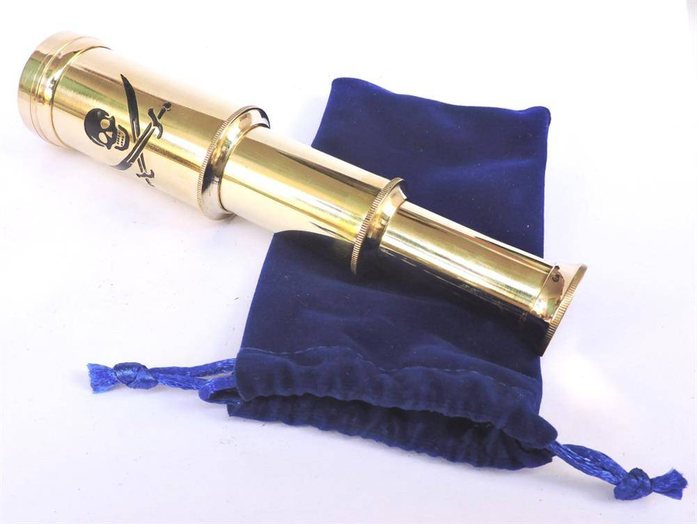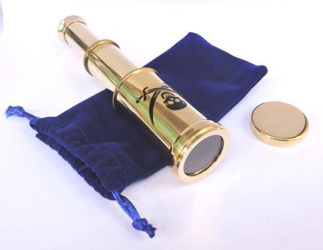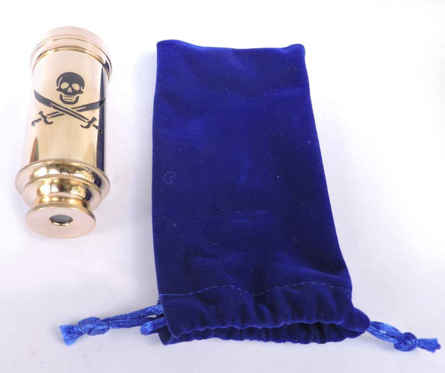 Niewielka luneta po złożeniu mieści się w granatowym, welwetowym woreczku. Luneta składana 3 częściowa. Przednia soczewka zabezpieczona wieczkiem. Na lunecie symbol piratów – czaszka i szable.