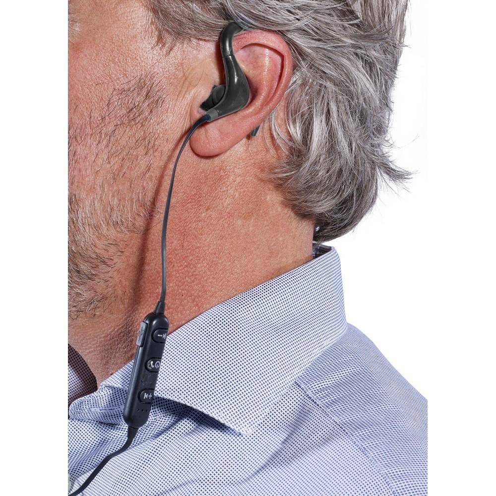 Bezprzewodowe słuchawki douszne (kabel 55 cm) w etui, funkcja odbierania połączeń, panel regulacji, kabel micro USB w komplecie