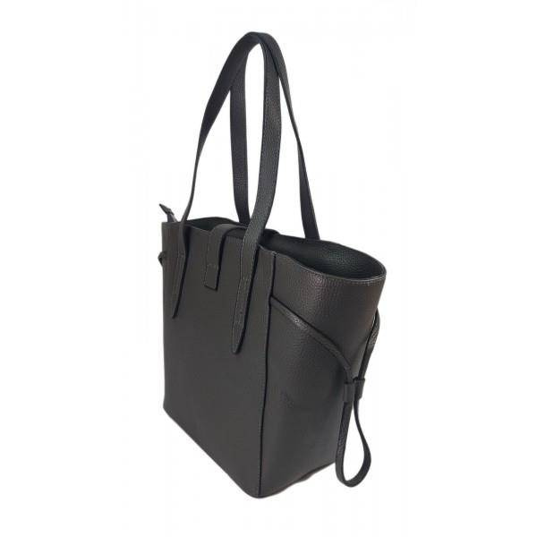 Pakowna włoska torebka skórzana na ramię mieści A4 ,Vera Pelle , Szara  BKL25G