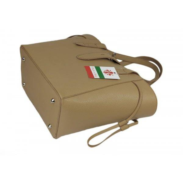 Pakowna włoska torebka skórzana na ramię mieści A4 ,Vera Pelle , Beżowa  BKL25T