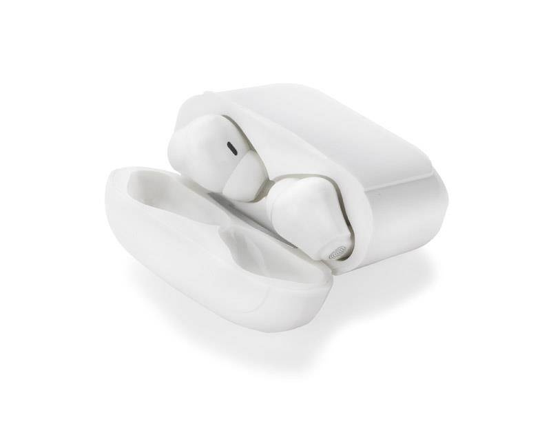 Słuchawki bezprzewodowe NIDIO mieszczą się w wygodnym etui niewielkich rozmiarów, które służy jednocześnie jako stacja ładująca.