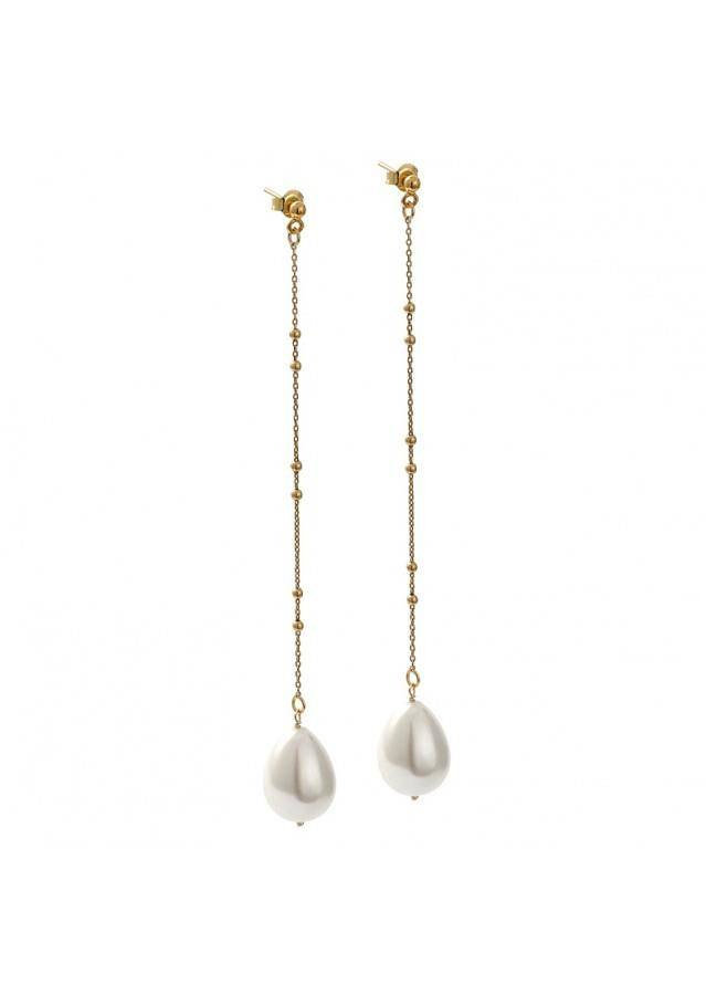Kolczyki wykonane ze srebra próby 925 ,pozłacane 24 karatowym żółtym złotem Kamień: Perła Długość ok. 9 cm Rozmiar kamienia: ok. 13x17 mm Produkt wykonywany ręcznie, możliwość zmiany długości kolczyków WIĘCEJ INFORMACJI