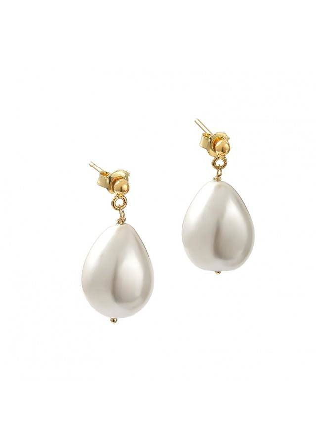 Kolczyki wykonane ze srebra próby 925 ,pozłacane 24 karatowym żółtym złotem Kamień: Perła Długość ok. 2 cm Rozmiar kamienia: ok. 13x17 mm Produkt wykonywany
