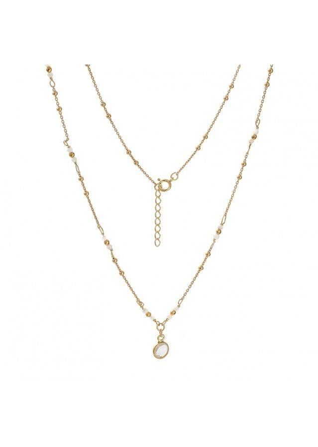Naszyjnik wykonany ze srebra próby 925 , pozłacanego 24 karatowym, żółtym złotem Kamień: Kamień księżycowy + Hematyt + Kryształ górski Rozmiar kamienia: 2 mm Długość :45 cm  OPAKOWANIE W CENIE