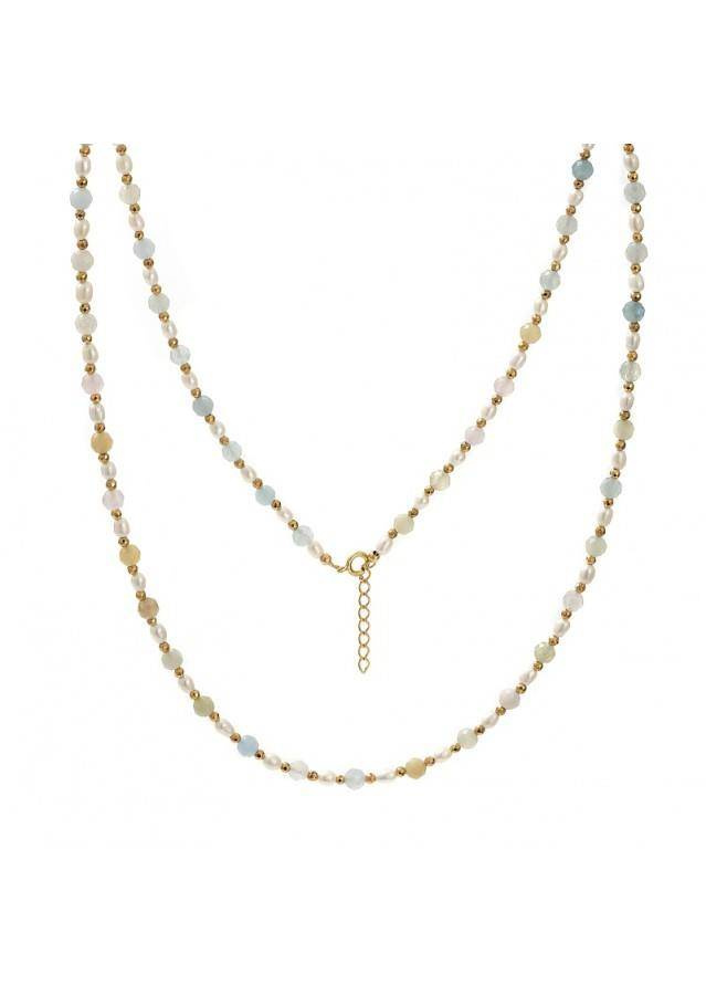 Naszyjnik wykonany ze srebra próby 925 , pozłacanego 24 karatowym, żółtym złotem Kamień: Hematyt + Morganit +perła Rozmiar kamienia: 4 mm/2mm Długość :szyja: